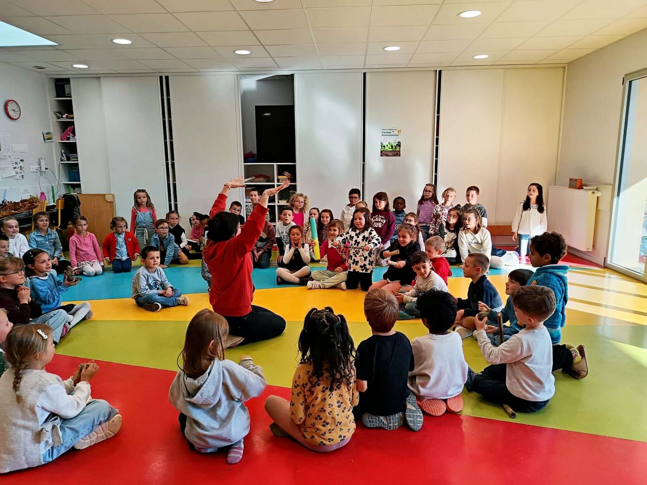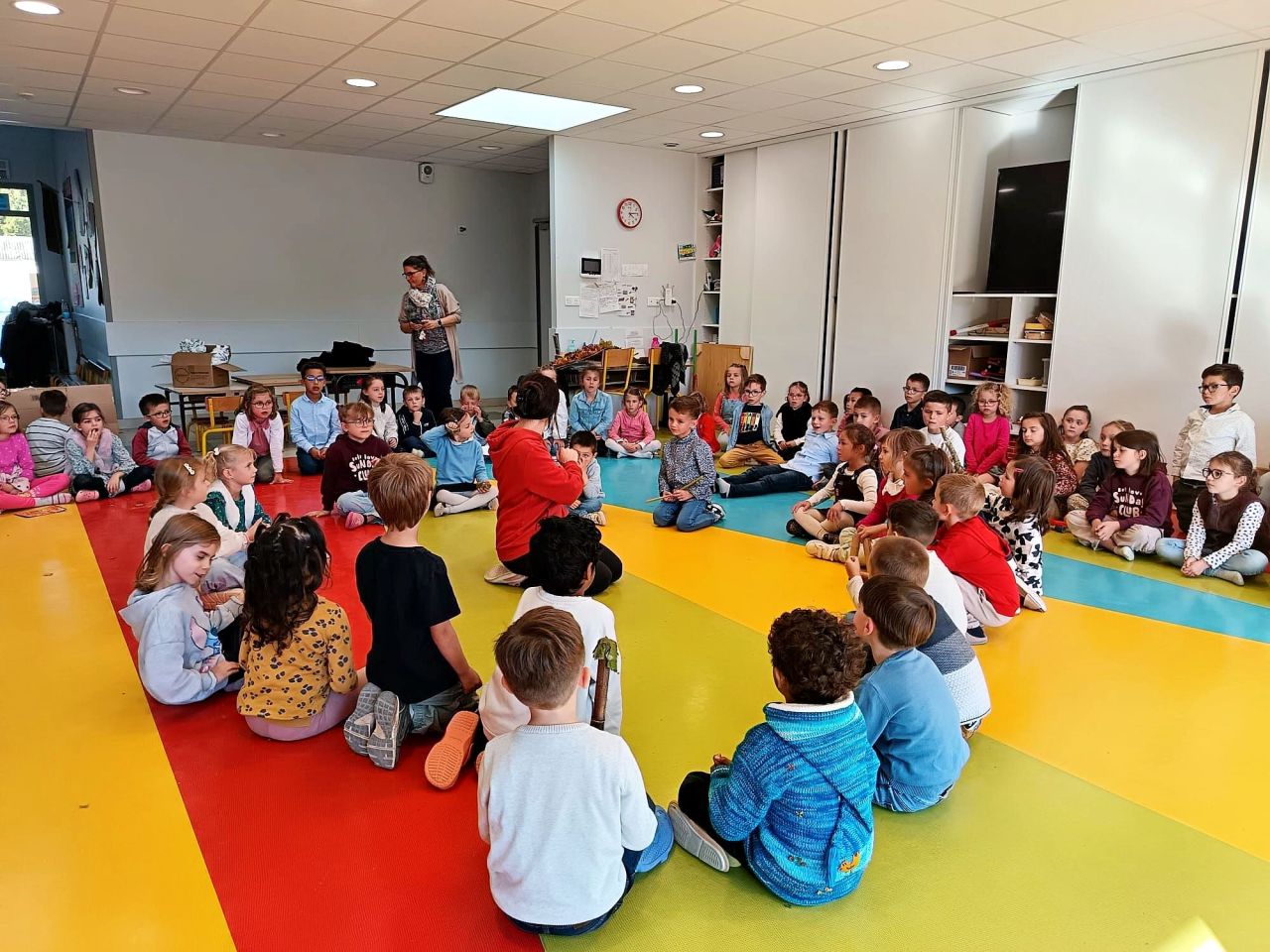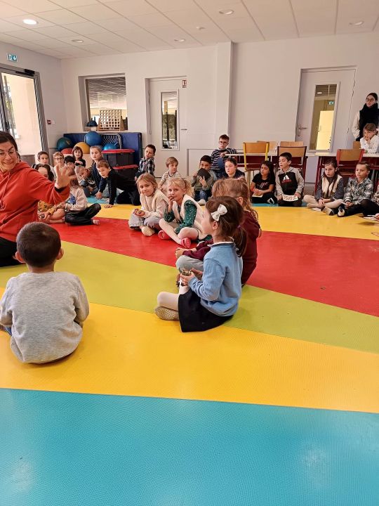 La classe de Nolwenn nous a offert un concert avec des instruments issus de la nature ou du corps à la façon de l'homme préhistorique.